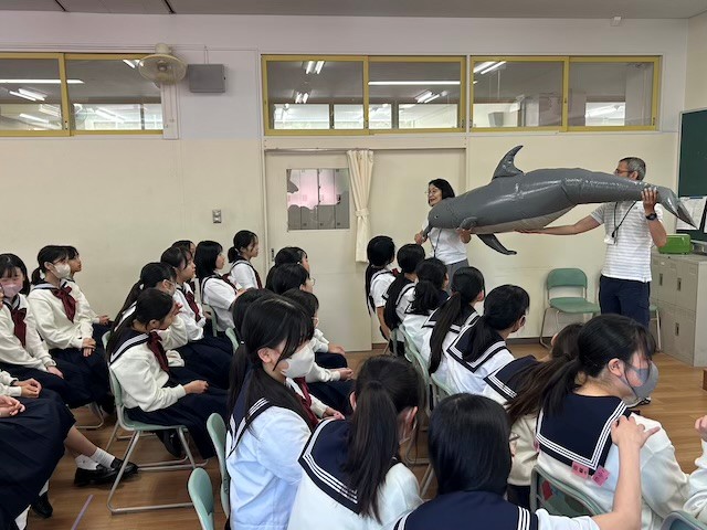 - 使用教材:海洋学習教材LAB to CLASS https://lab2c.net :《実物大のイルカをつくろう!》実物大イルカ模型 / 《餌の餌の餌は何?〜海の⾷物連鎖 PART1〜3 北の海/磯・外洋/サンゴ礁》