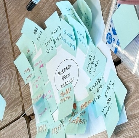 海底ごみの実例なども学びながら、「自分にできること」をグループで話し合いました。